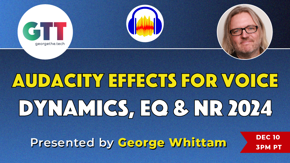 I’ll have presentations on a few tech topics, as well as offering an X-session or two. I’ll also have special offers from George The Tech available only to participants. PLUS, at the big closing event raffle we’ll be giving a 1 year Silver GTT Membership valued at $2000!
